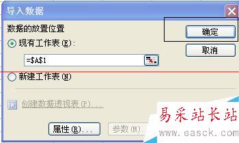 5、在彈出的“導入數據”窗口中你可以選擇“現有工作表”或者“新建工作表”,然后單擊確定。