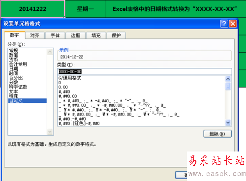 在此彈窗中將“自定義”下的“類型”填寫為“0000-00-00”,如圖操作。