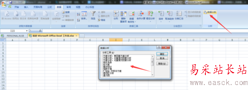 5、經(jīng)過(guò)上一步已經(jīng)成功添加”數(shù)據(jù)分析插件“,在”數(shù)據(jù)“-”數(shù)據(jù)分析“下可以找到,如圖