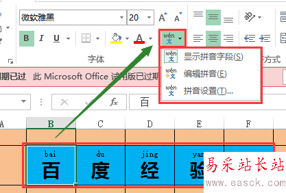 2、參照【怎么給Excel表格內(nèi)文字標(biāo)注拼音(同一表格內(nèi))】這篇經(jīng)驗(yàn)為表格內(nèi)文字添加拼音。