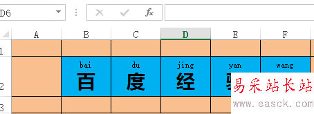1、創(chuàng)建Excel表格,要求表格中多個(gè)表格內(nèi)有文字,且文字帶有拼音。