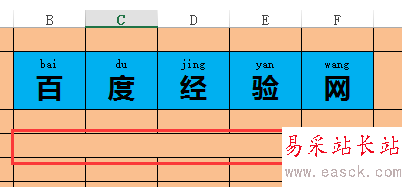3、為了視覺效果最好,在表格中合并一個(gè)和B2-F2同寬的單元格,如圖所示。