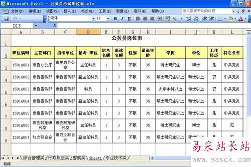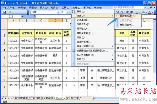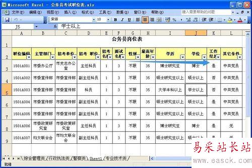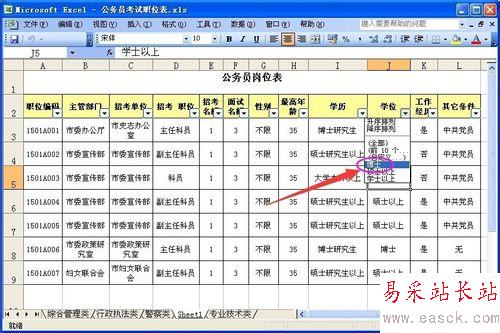 例如:我們給“學(xué)位”設(shè)置條件為博士。這時(shí),在工作表中就只顯示“博士”的數(shù)據(jù)列了。