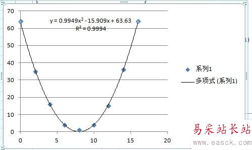 在這里可以選擇需要你和的曲線類型,如線性,指數,冪,對數,多項式。。選擇多項式。