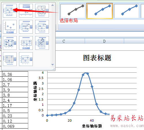 會看到有很多布局類型的圖標,選擇自己需要的。比如,圖中選的布局是常見的有標題,坐標軸名稱的。
