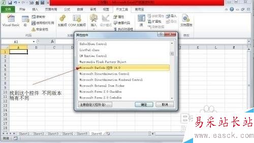 3、在彈出的【其他控件】對話框中選擇Microsoft Barcode Control 15.0;然后點(diǎn)擊確定;此時(shí)鼠標(biāo)變?yōu)橐粋€(gè)十字光標(biāo)