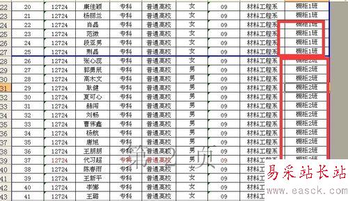 6、鼠標定位到此位置,然后再次右鍵點擊插入分頁符,在另兩個班級之間插入分頁符。