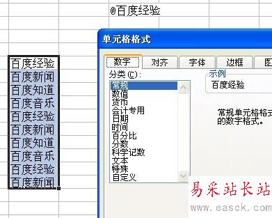 5、如圖有要大量的輸入@前綴的話,這兩個方法都會感覺有點麻煩,怎么辦呢?首先我可以選擇要輸入@前綴的區域,CTRL+1打開“單元格格式”對話框。