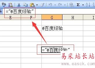 4、當然你還可以使用公式的方法來解決這個問題,你可以輸入如="@百度經驗"就可以解決問題。