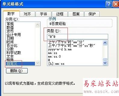 6、選擇“自定義”在輸入類型中輸入"@"@就可以解決這樣的問題了。