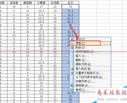 3、選擇好要復(fù)制的數(shù)據(jù),然后點(diǎn)擊右鍵,點(diǎn)擊【復(fù)制】。