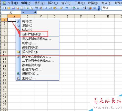 4、在要粘貼的表格處單擊鼠標(biāo)右鍵,點(diǎn)擊【選擇性粘貼】。