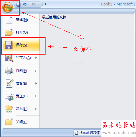 第5步:這時我們可以試一下,再次單擊左上次Office按扭,在彈出的office菜單中單擊保存。