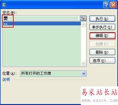 4、依次點擊菜單欄上的工具---宏----宏,選aa,點編輯按鈕;