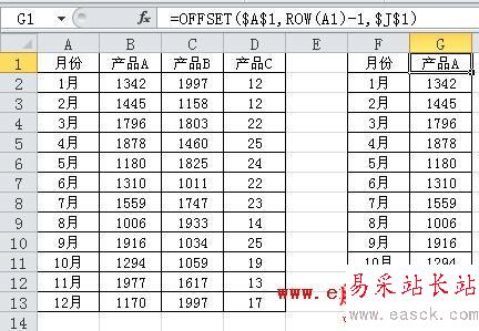 以F列和G列為輔助列。將A1:A13區域中的“月份”數據復制到F列,在G1單元格中輸入公式: