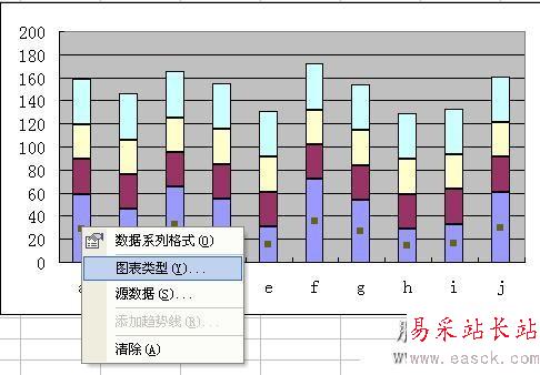 左鍵激活數(shù)據(jù)即紫色的柱狀體,然后右擊該激活部分,選擇圖表類型,如圖所示