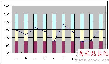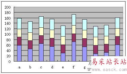 將輔助數(shù)列復(fù)制并粘貼到數(shù)據(jù)表格中,或者選中數(shù)據(jù)和輔助數(shù)據(jù)一起建立堆積柱形圖,效果如圖3所示