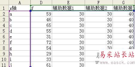 很難分清楚哪些點(diǎn)落在警戒線30以下,哪些落在60點(diǎn)以上,怎么樣來解決這樣的問題呢?我們可以通過建立輔助數(shù)據(jù)來對(duì)表格進(jìn)行橫向分隔。