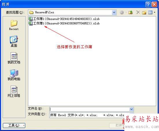 打開“打開”對話框,在中間的列表框中選擇需要恢復的工作簿,單擊“打開”按鈕即可,如圖所示: