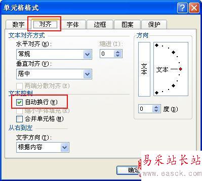 Excel2003操作方法:鼠標右擊,選擇【設置單元格格式】,然后選擇【對齊】選擇項卡,把【文本控制】下面的【自動換行】前面的勾選中,如圖所示:
