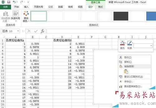 1、采用的數據如下圖所示,數據為作者自己通過matlab隨意構造。兩條曲線分別命名為“百度曲線A”和“百度曲線B”。