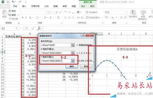 5、按照同4一樣的步驟,選擇y軸的系列值。出現了5-3區域的曲線圖。