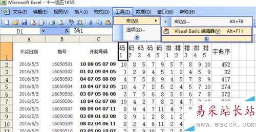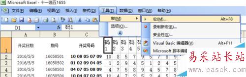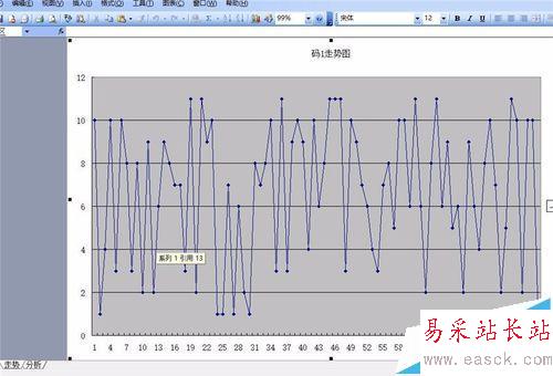 利用excel vba編程,實現對工作圖的操作,以達到自動查看excel工作表中各種數據走勢的目的。我們要查看高頻彩11選5的各種分析后的數據走勢。