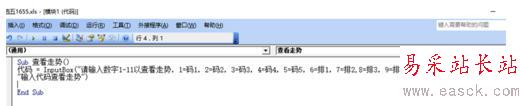 4、給程序命名為“查看走勢”,用“代碼”來方面接收用戶的輸入。