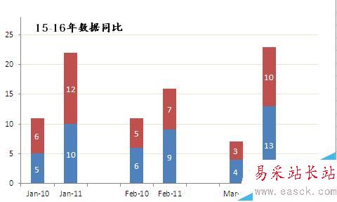 如果有兩組數據需要進行兩年度同比,這時我們就可以用分組堆積圖來展示