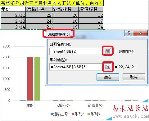 2、編輯數(shù)據(jù)系列,對(duì)系列名稱和系列值進(jìn)行編輯。