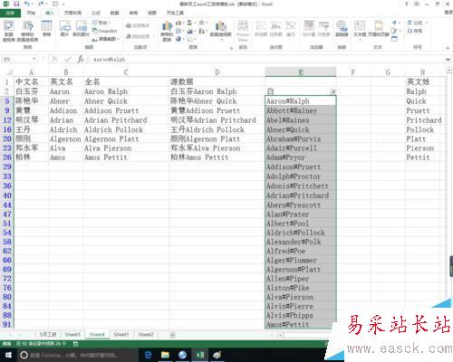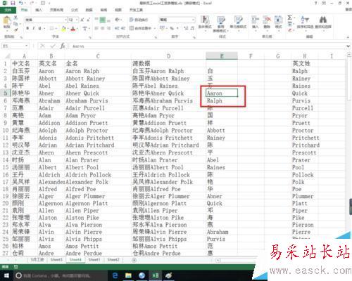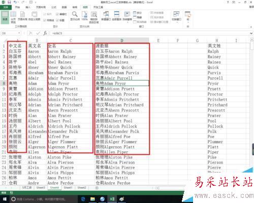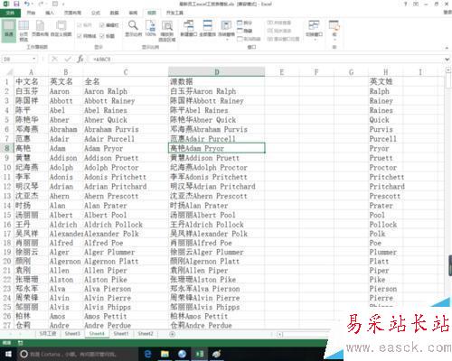 4、因為空格將英文姓名分離,所以被處理成兩行,我們需要對其進行修改,使用連字符或者任意字符替換空格,來鏈接英文姓名,并重復(fù)步驟3。
