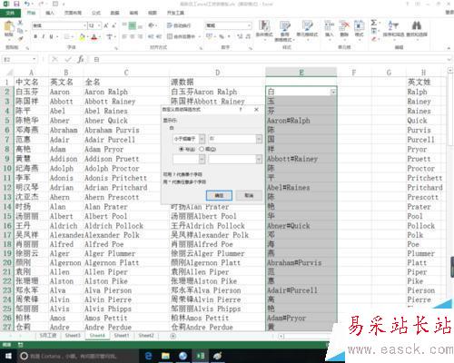 8、重復(fù)上列步驟,對英文姓名進行提取,提取英文姓名則需要在篩選判斷條件中使用大于等于任意漢字的條件。并使用替換功能,將#連接符全部替換為空格,完成對英文姓名的提取。