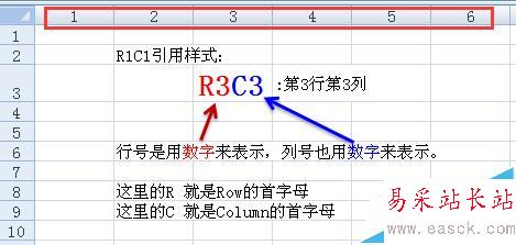 從這里,我們可以看出,A1引用樣式和R1C1引用樣式,有相通的地方,但也有不同。比如列號(hào),在R1C1引用樣式下,列號(hào)還是按數(shù)字1 2 3 ...來表示,但在A1引用樣式下,列號(hào)用字母A B C...來表示。