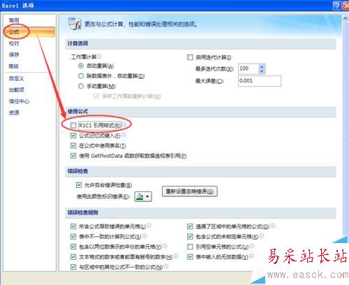 可以到Excel選項(xiàng)》公式》將R1C1引用樣式打鉤,即可啟用。