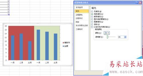 做背景的輔助列一定要做在主軸上,因為次軸數據會遮擋住主軸數據。