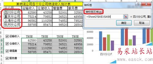 3、軸標(biāo)簽區(qū)域——選擇分公司。更改X軸的數(shù)據(jù)。