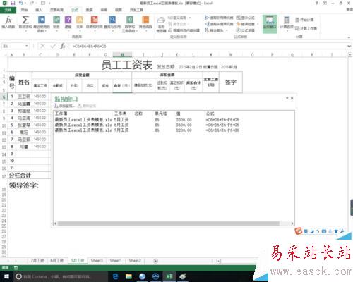 6、在所有需要查詢的數據單元格全部添加完成后,在監視面板內,相關的數據排列的清晰明確,最終的結果和使用公式是一樣的。
