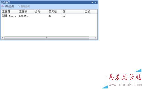 7、選擇“添加”,這時“監視窗口”對話框下就多出了一行信息,就是你監視的單元格