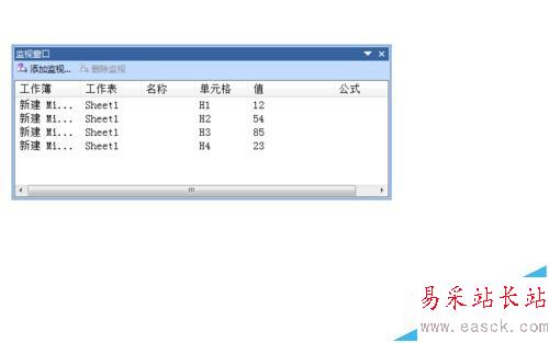 8、我們用同樣的方法,把其他幾個單元格都添加到監視,最后得到下圖所示,這樣我們就實現了對單元格數據的監視,各單元格的數據一目了然,如果有公示的話,也會自動實現公式監視功能。