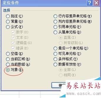 4、然后,在彈出的對話框中選中“對象”,然后點確定