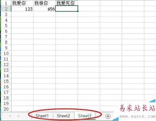 3、然后,按住Ctrl鍵,接著選定剛才新建的幾個(gè)工作邊,點(diǎn)擊“sheet1”“sheet2”等幾張表,此時(shí)最上方會(huì)顯示“工作組”幾個(gè)字。