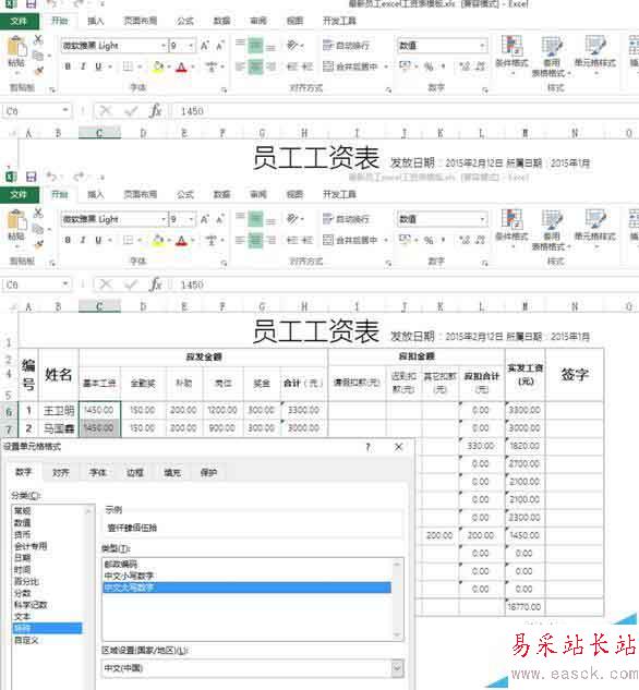 2、在表格中,每個人的工資都是以數字格式存在的數值,也就是阿拉伯數字形式。