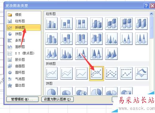 5、在彈出的設置框中選擇“折線圖”——“確定”,結果如圖。