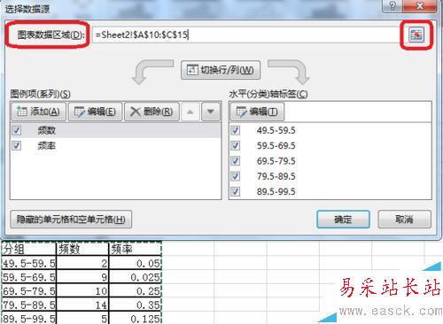2、如圖所示,圖表數據區域——選擇整個圖表——點擊確定。