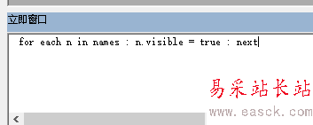 2、將下面的代碼復制到立即窗口里,for each n in names : n.visible = true : next 然后光標放在這行上,回車。