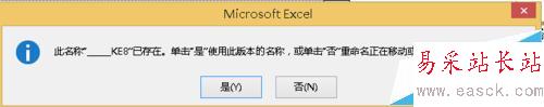 1、每次移動復制excel標簽的時候提示此名稱/a ke8已存在