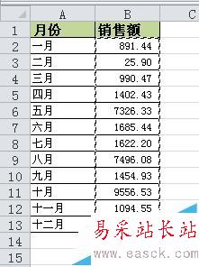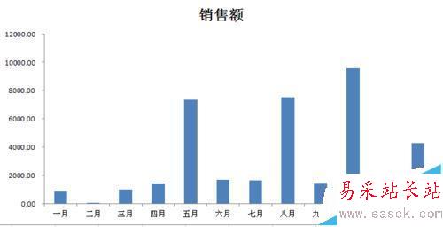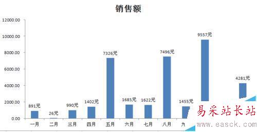 如下圖,是一個簡單的月銷售額報表,我們以柱形圖為例,先以它做為數據源生成一個柱形圖表。