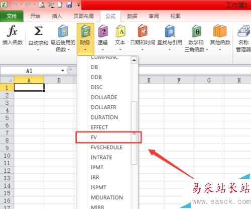 2、點(diǎn)擊【財務(wù)】,在彈出的下拉菜單中,找到【FV】(FV表示復(fù)利終值)