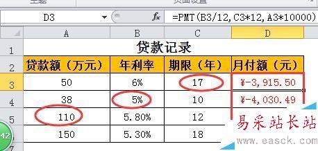 6、我們還可以根據需要分別更改貸款額,年利率,期限,月付額都會跟著自動變化了。