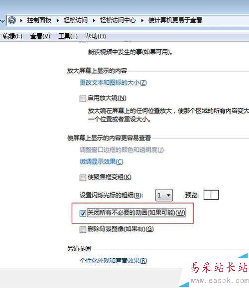 4、選擇“關閉所有不必要的動畫(如果可能)
